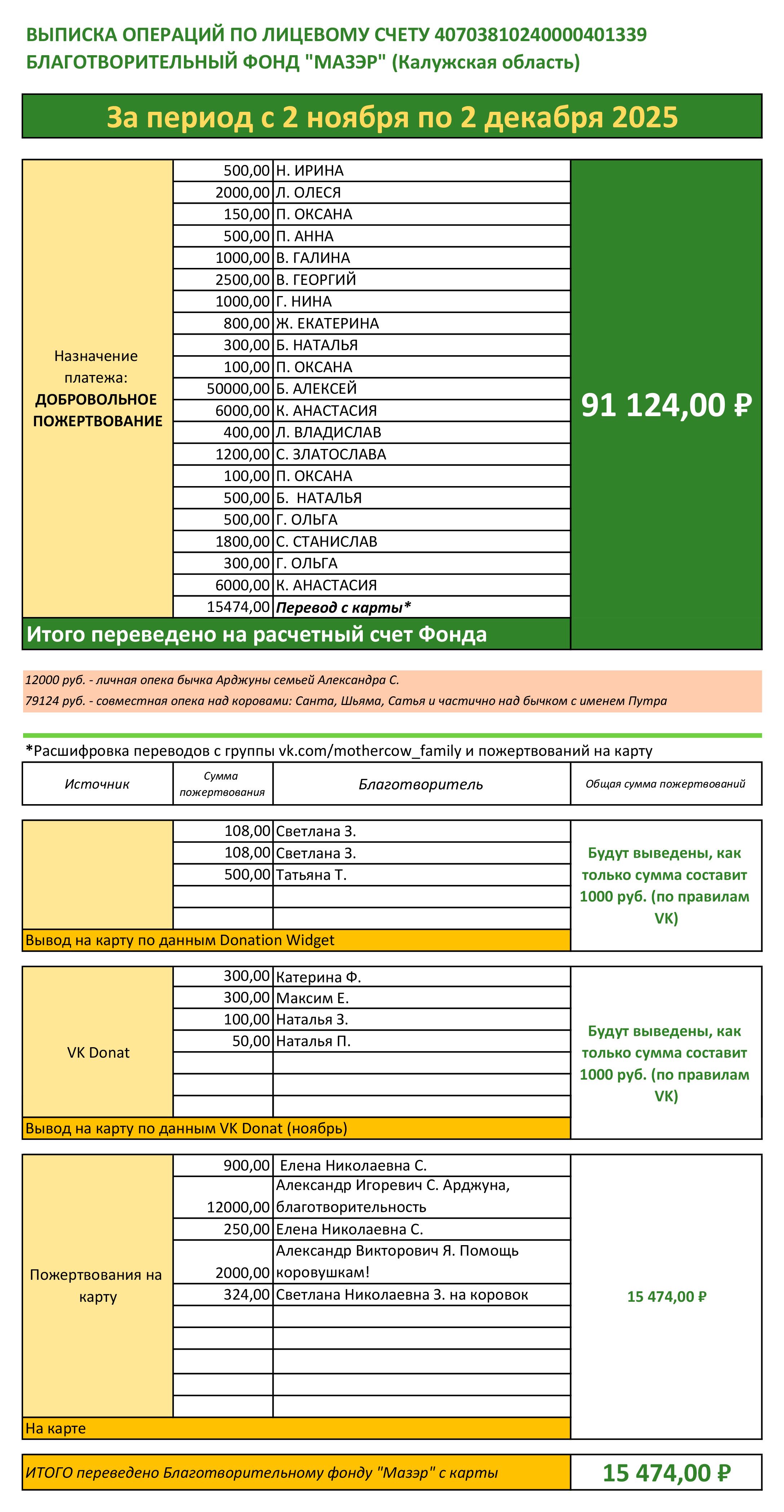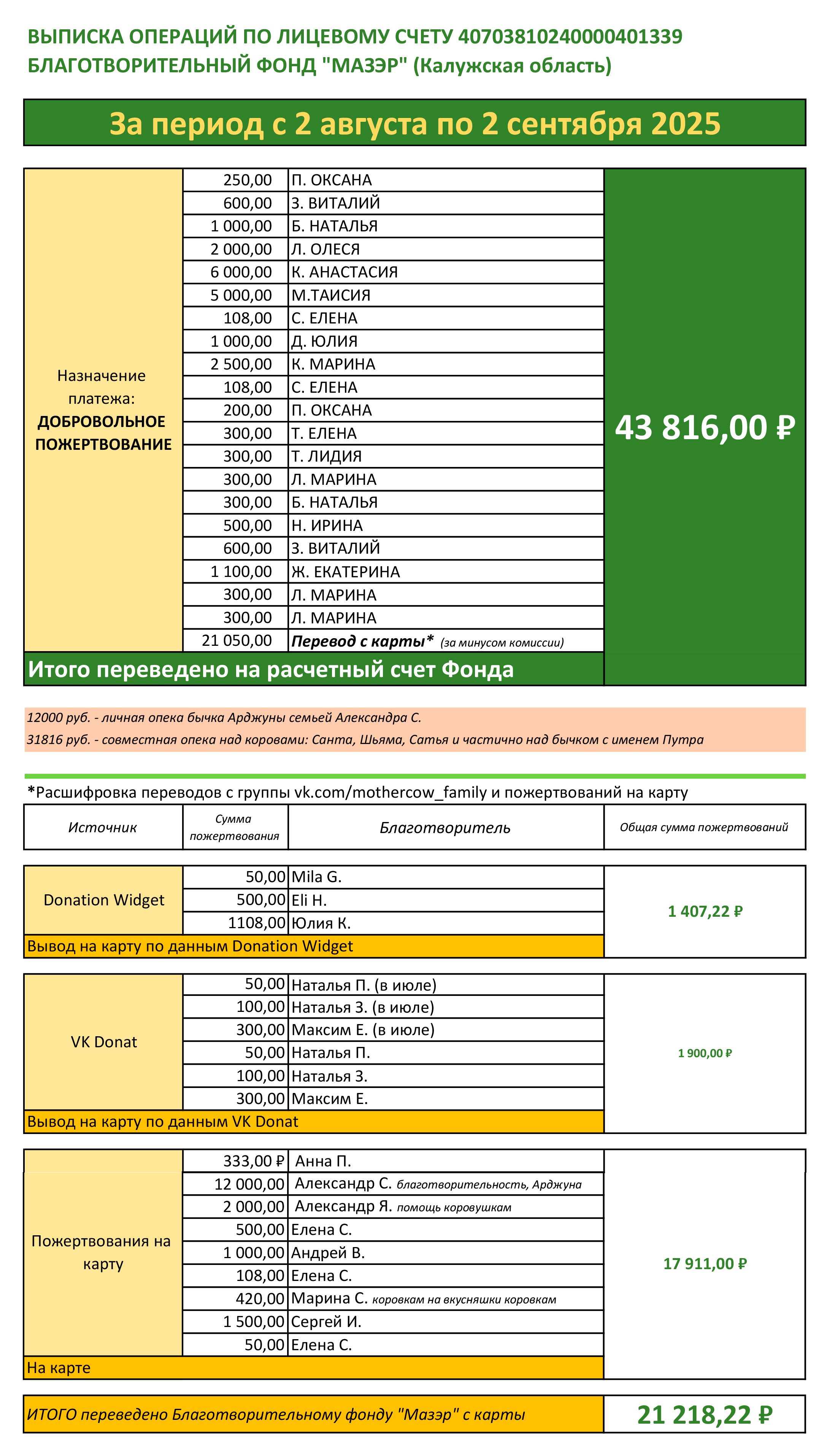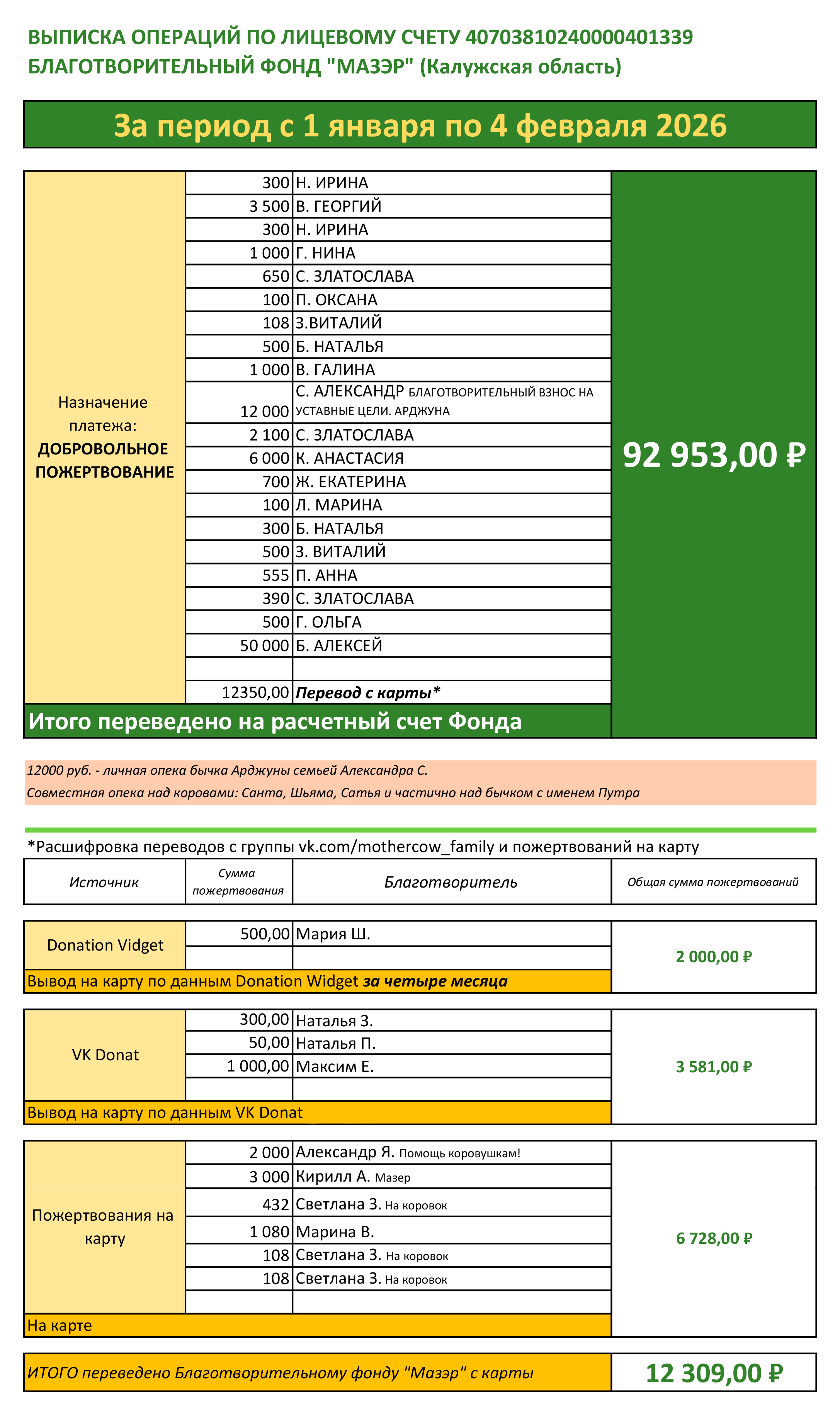 Друзья, сердечно благодарю каждого за участие в жизни удивительных животных - коров и бычков! По этим вариантам я отчитываюсь ежемесячно на страницах группы.