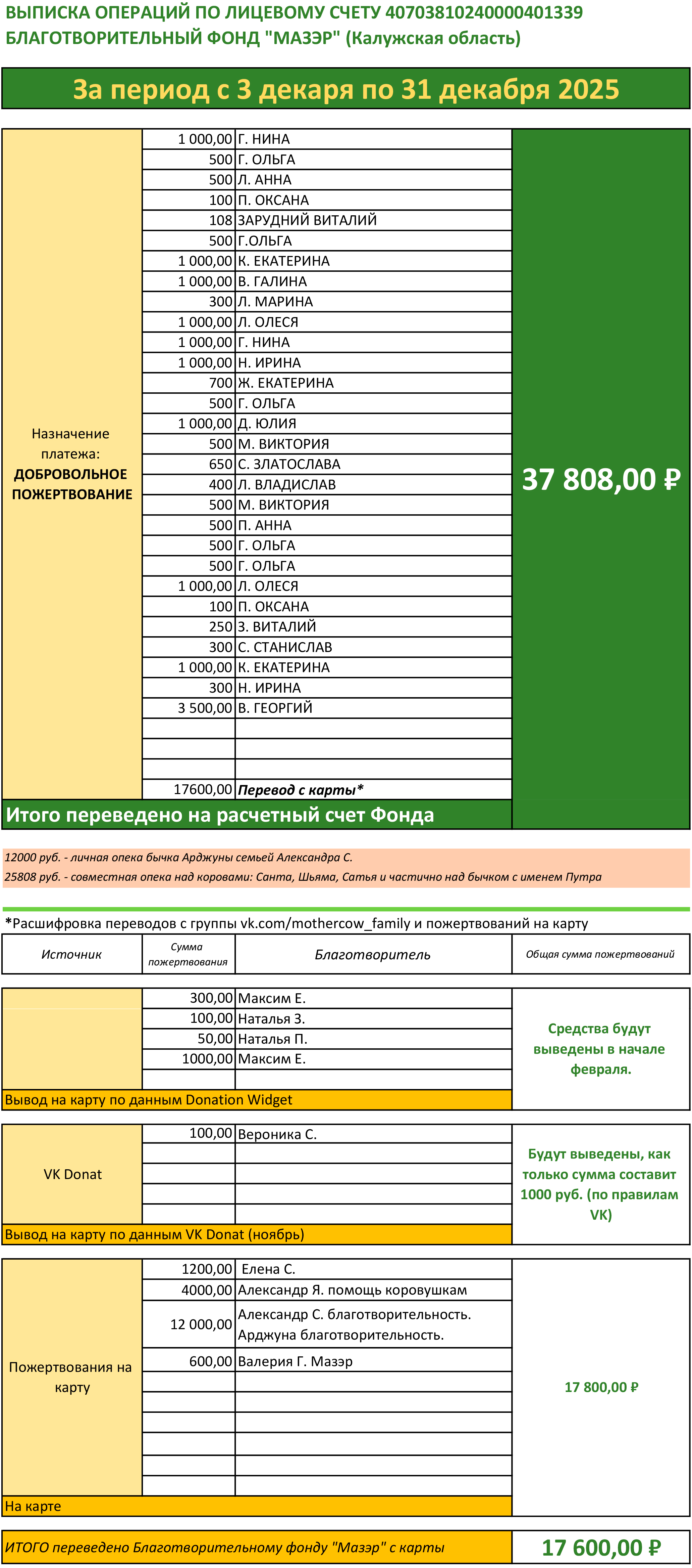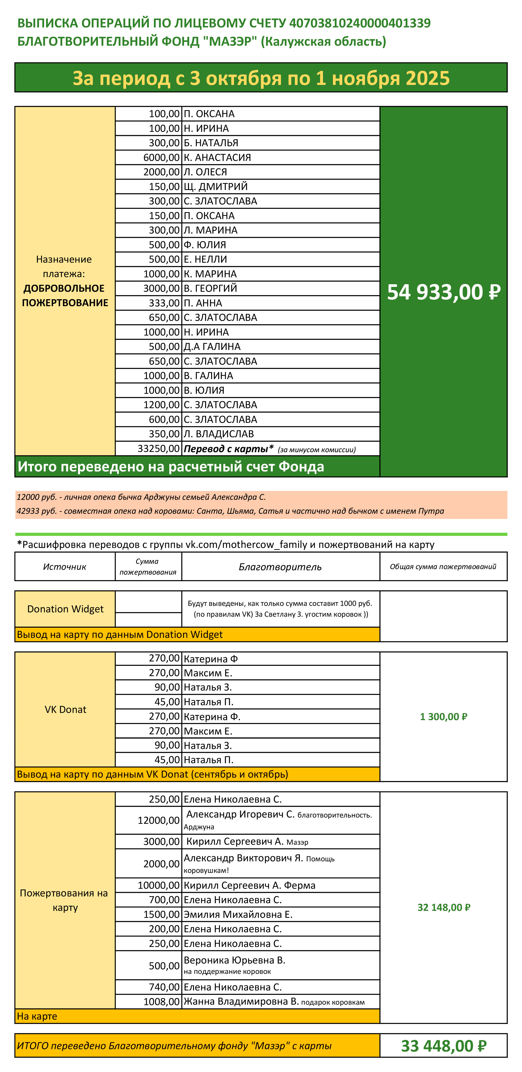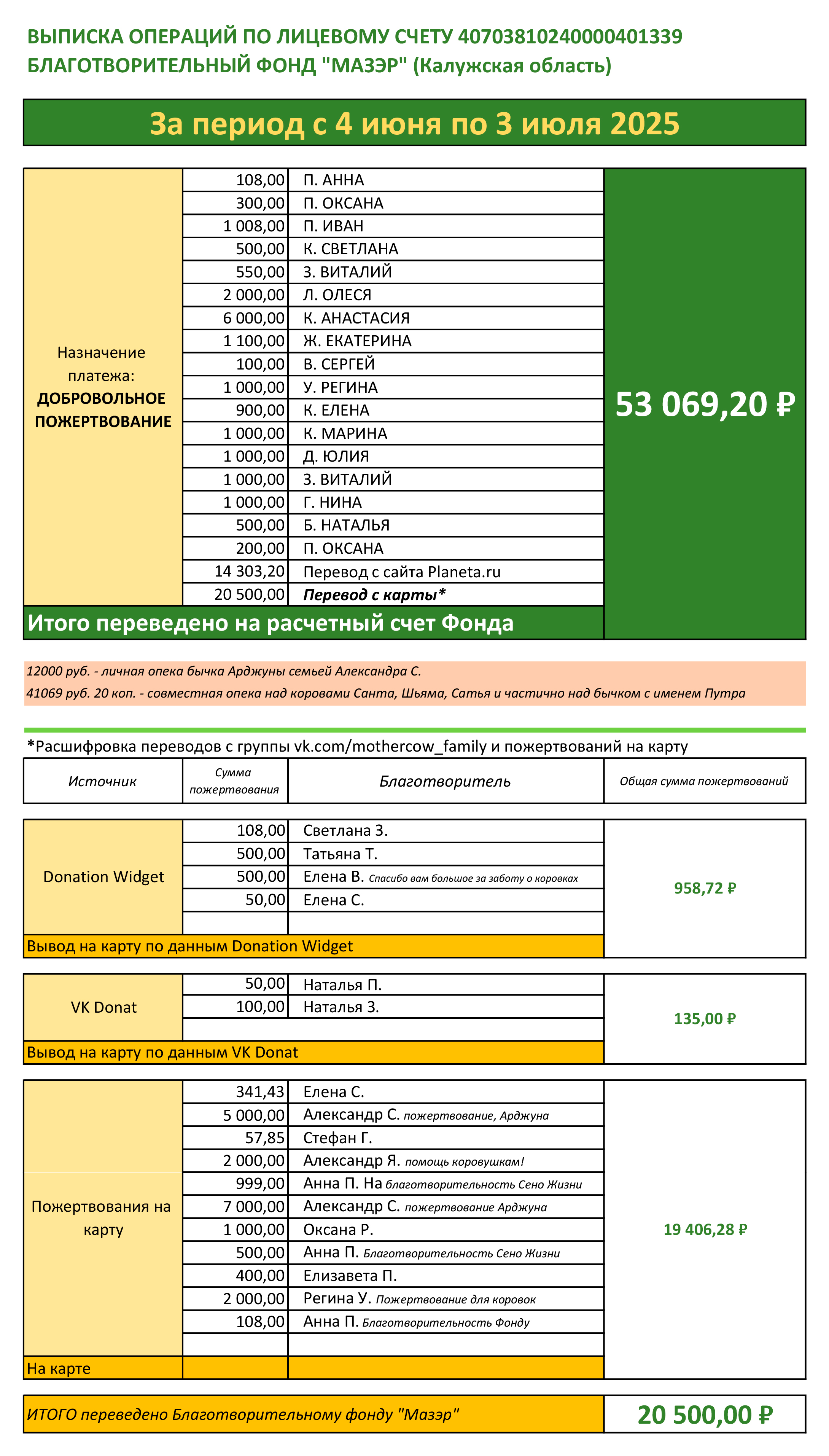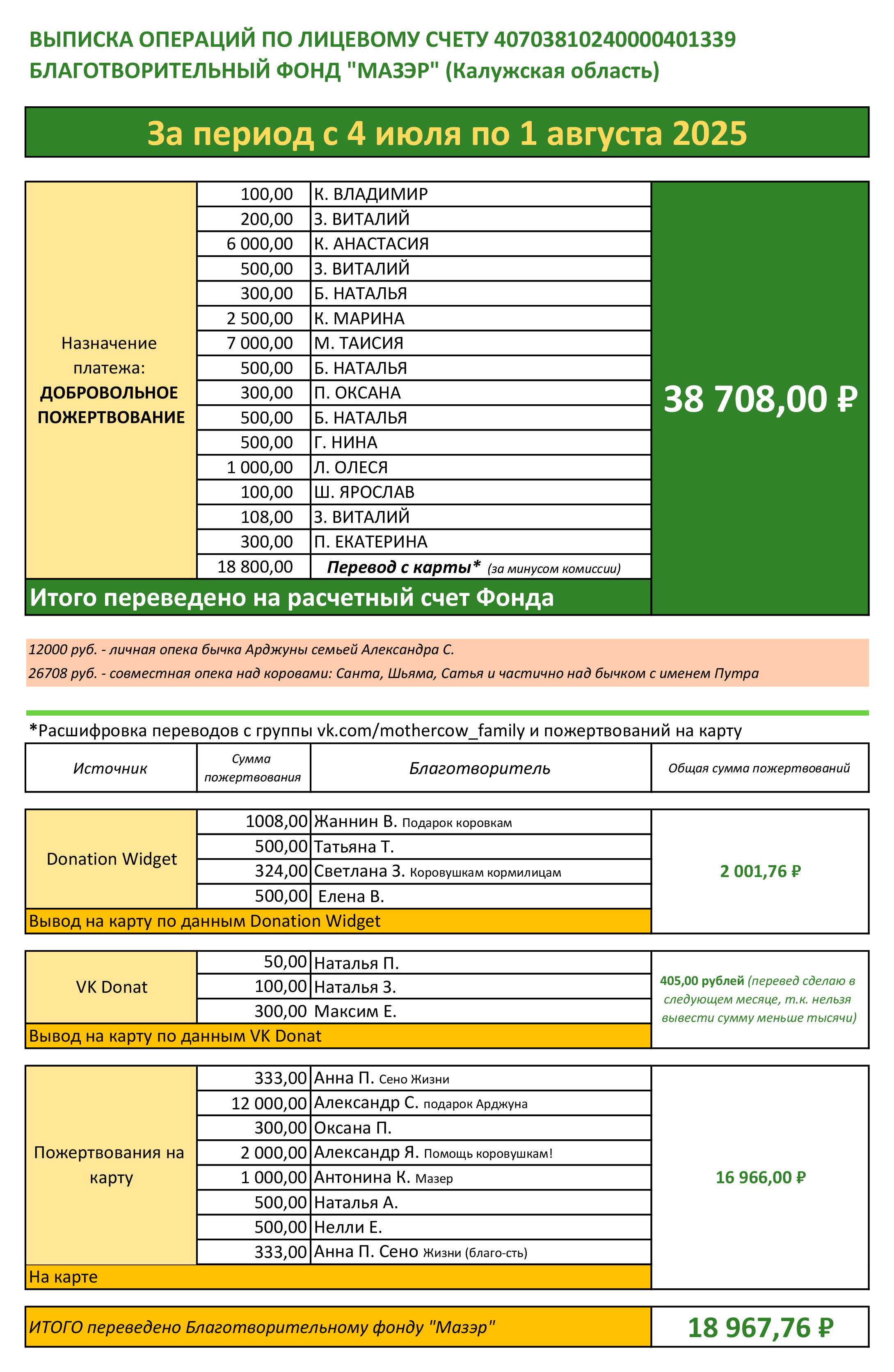 Друзья, сердечно благодарю каждого за участие в жизни удивительных животных - коров и бычков! По этим вариантам я отчитываюсь ежемесячно на страницах группы.